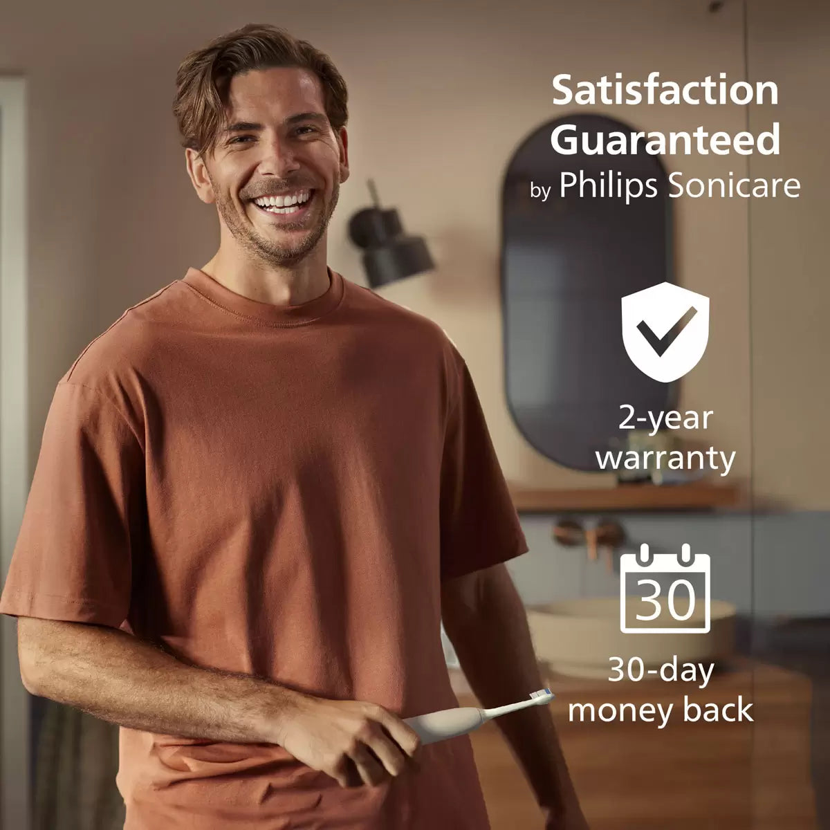 This next-generation Philips Sonicare Series 5300 Electric Toothbrush incorporates an innovative magnetic system that adjusts brushing power during each session. With 62,000 bristle movements per minute, it ensures thorough cleaning even in hard-to-reach areas. The dynamic fluid action enhances the brush head's cleaning performance by gently rinsing along the gumline between every tooth, ensuring a complete clean every time.