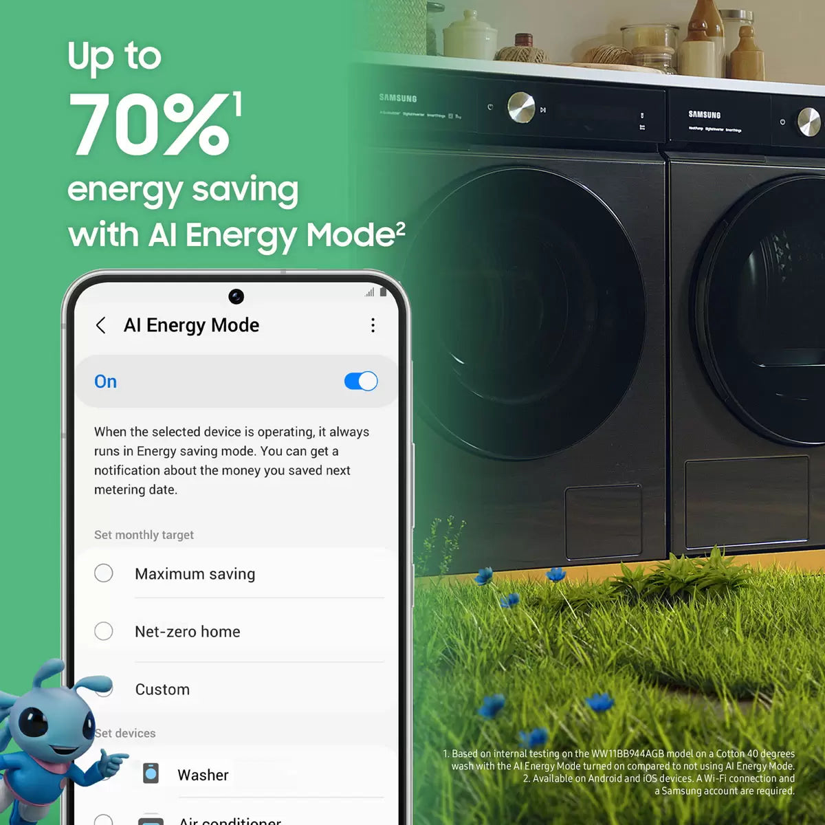 Ecobubble™ technology is one of Samsung's brilliantly useful features designed to make laundry less of a chore. Mixing air, water and detergent, it cleverly creates bubbles that wash your clothes at cooler temperatures, helping you to bring down your energy bills.